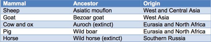 Diamond identifies five large domesticated mammals that have been globally important, and observes that all five are the descendants of mammals from Eurasia or the part of Africa with which Eurasia easily communicated.
